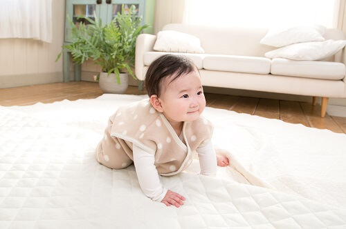 アクリルやフリースなどの化学繊維は汗を吸ってくれず、蒸れてしまいます。天然繊維である綿は吸湿性と保湿性に優れているので蒸れにくく、快適。しっとりと空気を含むので適度に温度と湿度を保ち、赤ちゃんも快適に眠ることができます。